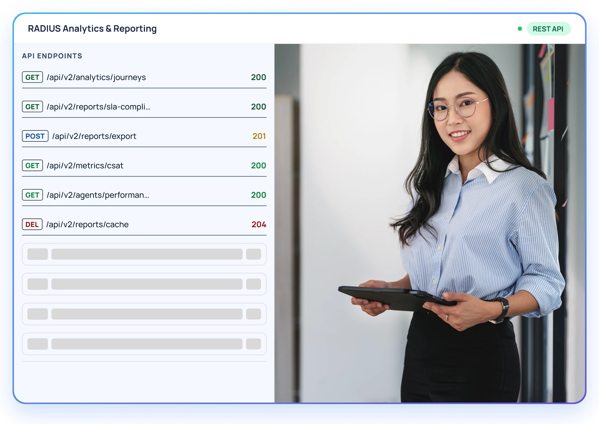 RADIUS Analytics & Insights is an enterprise-grade analytics tool that transforms customer interaction data into actionable business intelligence. It combines real-time monitoring, historical analysis, omnichannel visibility, and AI-driven insights to help you measure performance, understand customer journeys, and improve experiences at scale.