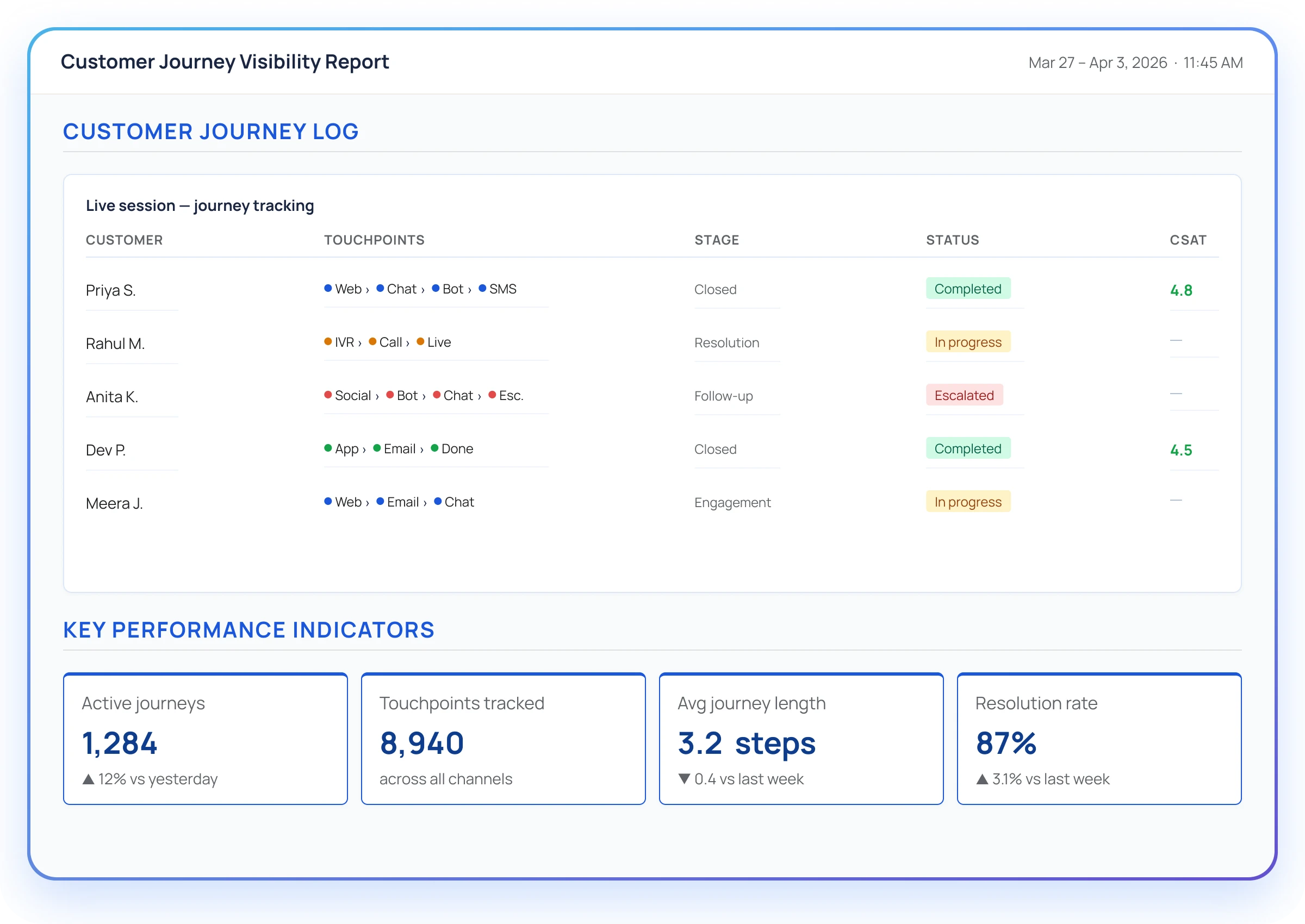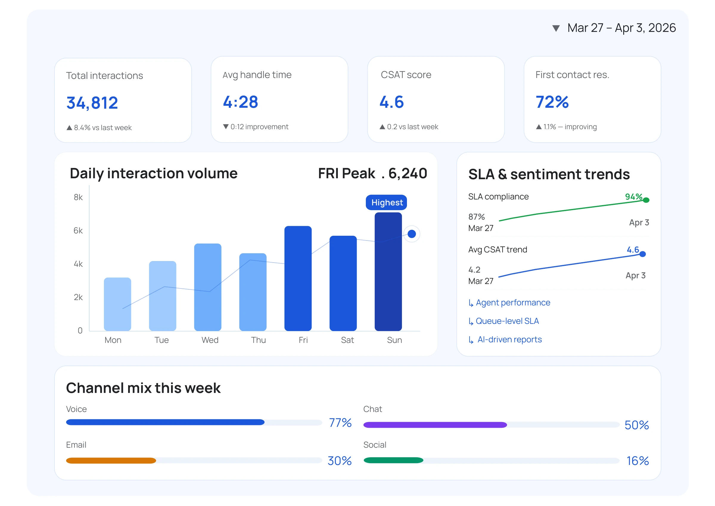 Measure performance, get complete journey visibility from first touch to resolution, and optimize customer experience with enterprise-grade reporting across all interactions.
